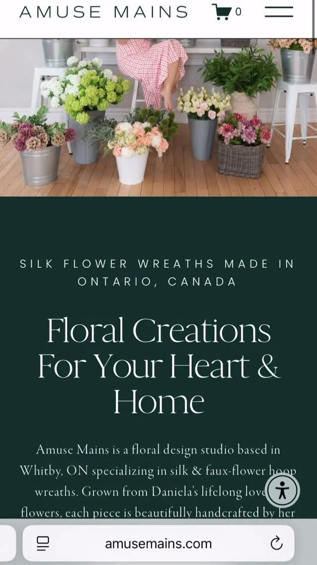 Hi! I’m Daniela - a passionate floral designer from Whitby, Ontario, and the creative hands behind Amuse Mains. I designed my studio for those who love to surround themselves with beautiful things that hold meaning, for all of us who like to celebrate all of life’s big and small moments. Our unique silk-floral arrangements are handmade with care and are the perfect way to bring life to any space. I love what I do, and can’t wait to share my passion with you!