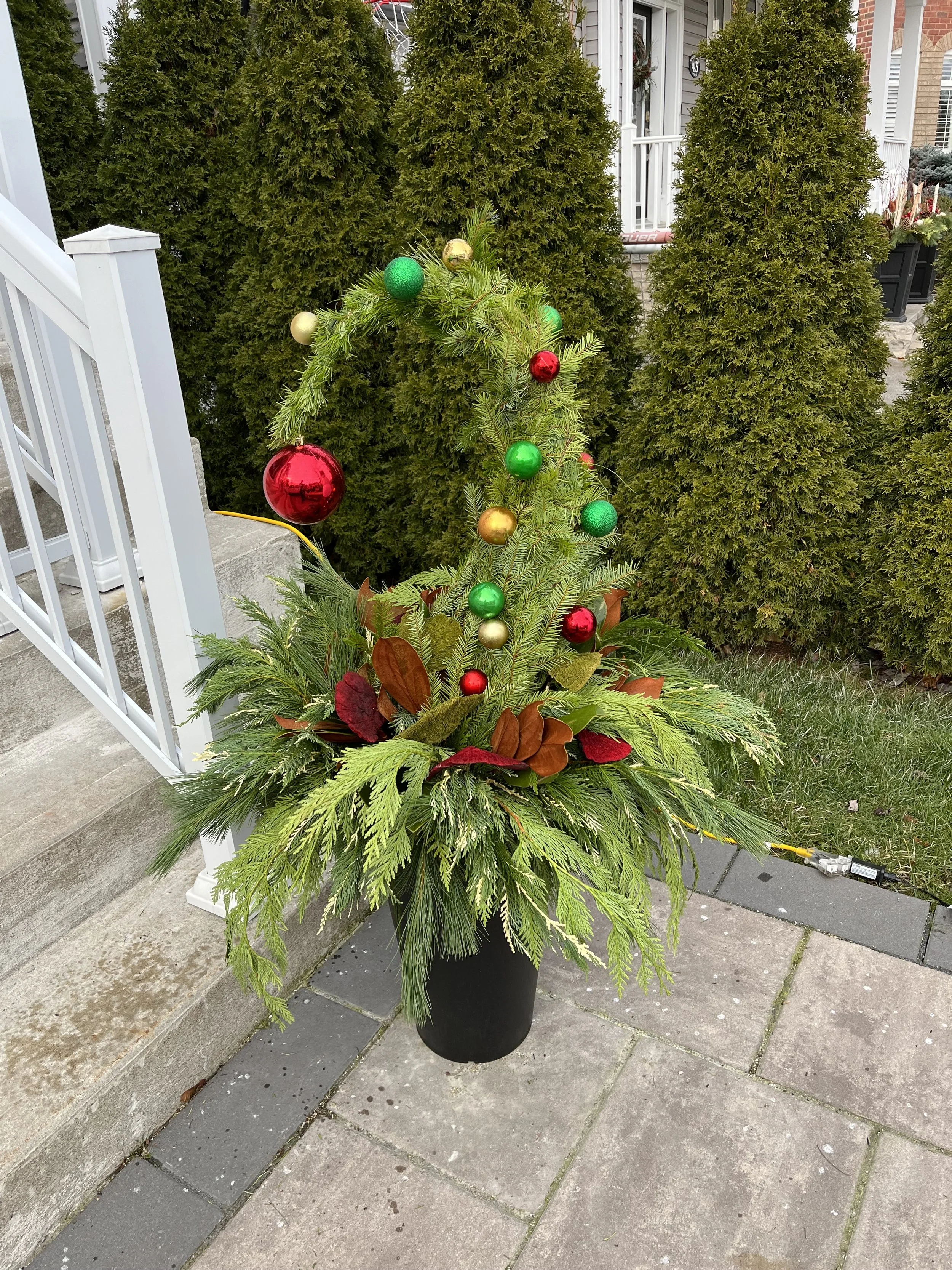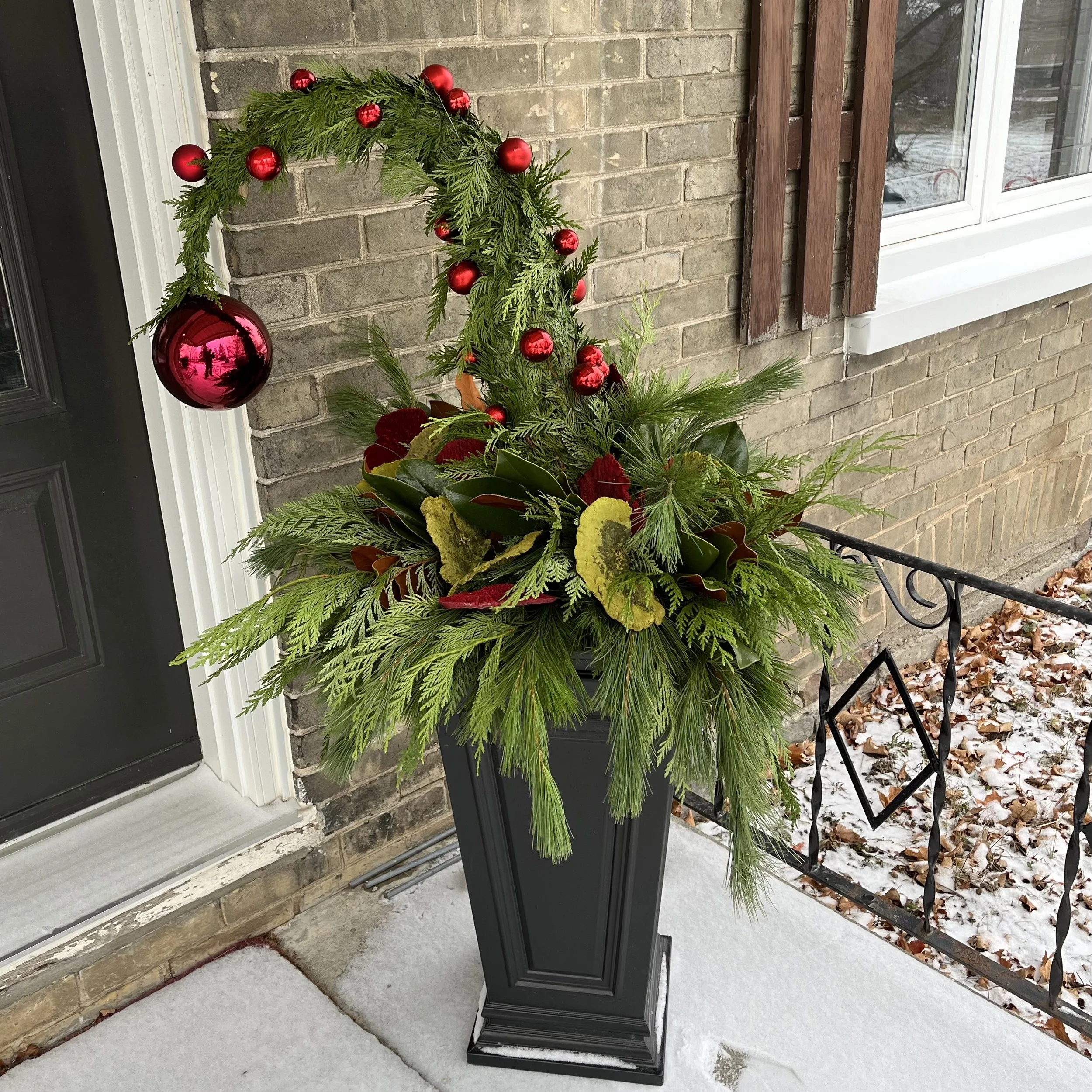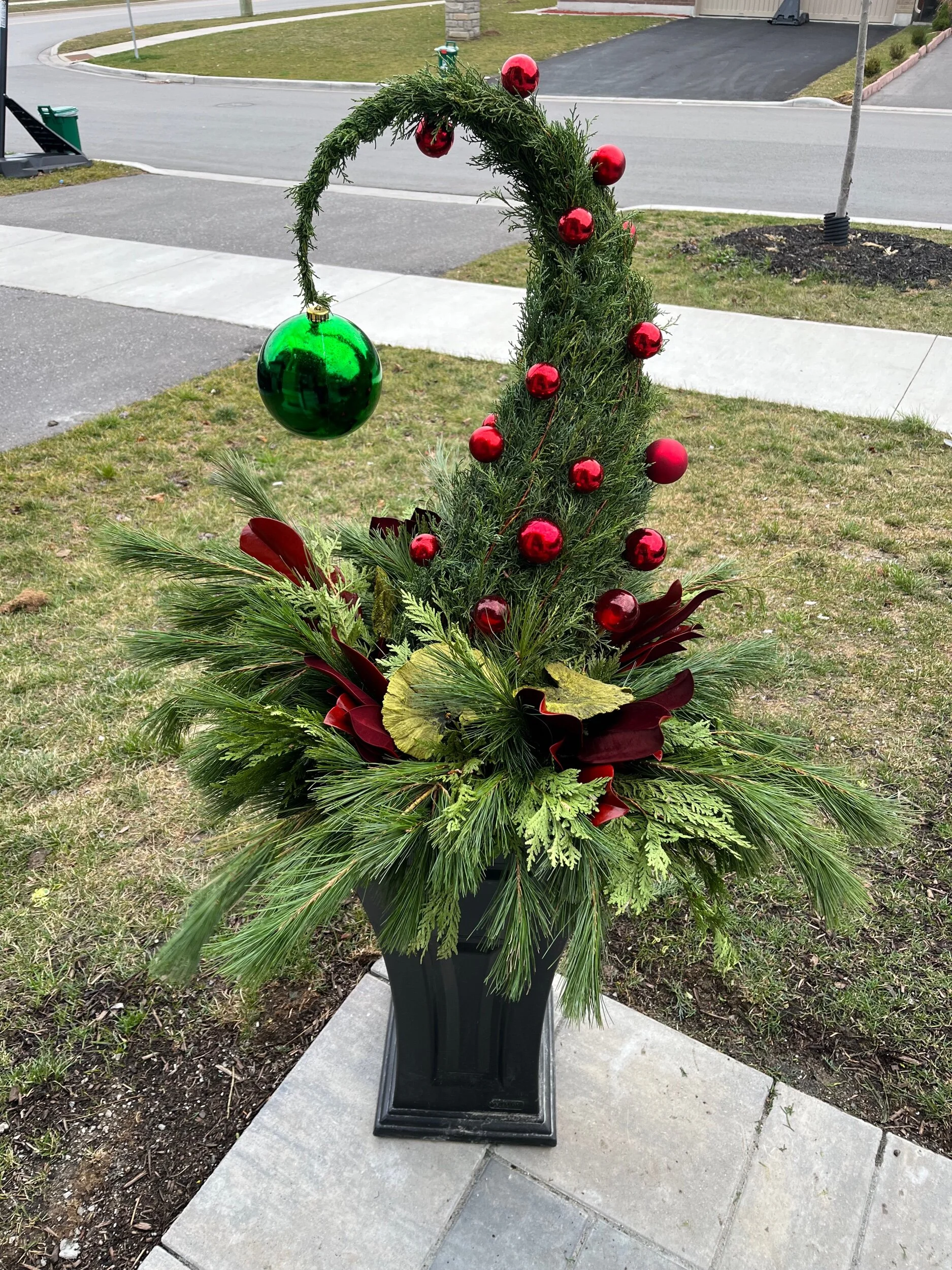 Here’s what You get - A custom created Grinch tree installed directly into your urn at your house. That’s right, I come to you with all the supplies and create this design for you. Select from a solid colour or multi-coloured option.
